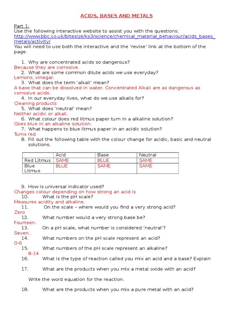 Acids And Bases Webquest Pdf Ph Acid